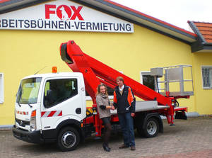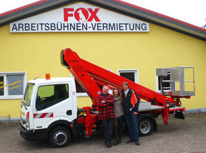 Innerhalb kürzester Zeit hat die Fox Mietlift mit Sitz in 30952 Ronnenberg bei Hannover gleich drei RUTHMANN STEIGER ® übernommen. Neben dem T 270, einem TB 220 auf Sprinter-Fahrgestell ergänzt jetzt ein weiterer TB 220 - montiert auf 3,5-t-Nissan Cabstar-Chassis - Fox Vermietflotte.