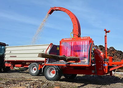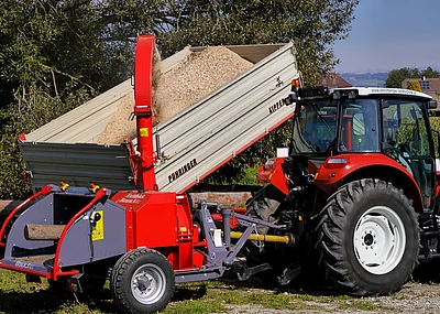Das autonome kraftvolle Einzugssystem des Biber 2-15 und die große Schwungmasse seines robusten Scheibenrades mit 3 Hackmessern bestückt ermöglicht den Dauereinsatz für alle Holzarten bis 15 cm Durchmesser.