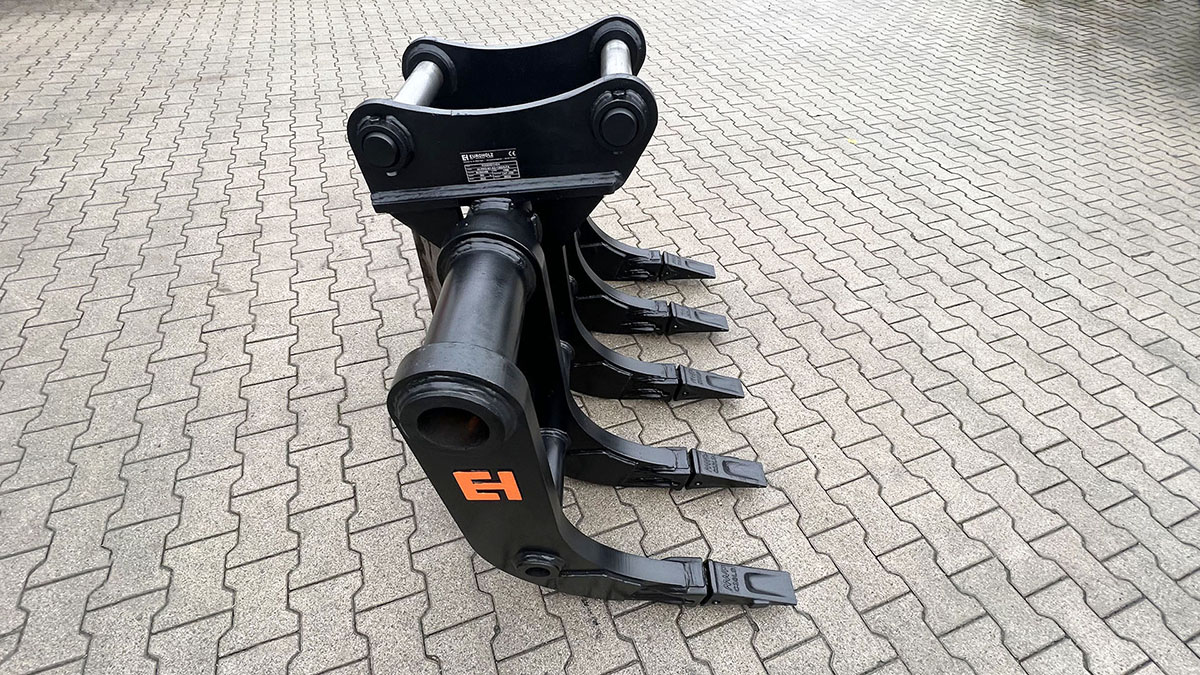 Durch verschiedene Breiten, Zinkenabstände und konstruktive Varianten lässt sich der passende Rechen auf unterschiedliche Anforderungen abstimmen. Je nach Modell kommen verschleißfeste Bauteile aus Hardox-Stahl zum Einsatz, die eine hohe Formstabilität auch unter mechanischer Dauerbelastung gewährleisten. Für unterschiedliche Bagger hat Euroholz eine vollständige Auswahl an Größen für praktisch jede Gewichtsklasse sowie viele mögliche Schnellwechsler auf Lager. Dadurch ist das Anbauteil direkt lieferbar und sofort einsatzbereit. Für bestmögliche Leistung und Effektivität spielt die Abstimmung zwischen Baggergröße und passendem Roderechen eine zentrale Rolle, um ein funktionales Verhältnis zwischen Baggerkraft und Materialstärke sicherzustellen.