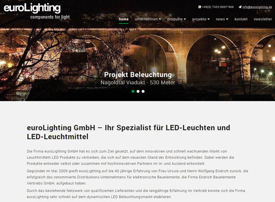 Unter <link http: www.eurolighting.de>www.eurolighting.de präsentiert euroLighting seine komplett überarbeitete Webseite in modernem Design, die nun übersichtlich und umfassend über die LED-Produkte und Dienstleistungen des Unternehmens informiert. Besonderen Wert legte der LED-Spezialist auf eine intuitive Bedienbarkeit.