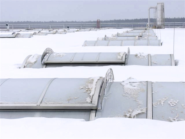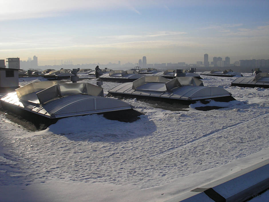 Die Schneeräumung des Flachdaches birgt die generelle Gefahr eines Durchsturzes durch nicht durchsturzsichere Dachoberlichter. In der Regel sind diese nicht betretbar ausgeführt. Auf einer verschneiten Dachfläche sind sie aber möglicherweise nicht erkennbar. „Dachflächen sollten vor den Räumarbeiten von unten betrachtet werden“, sagt Hegger. „So ist die Lage von flächenbündigen Lichtplatten sowie Oberlichtern in Form von Lichtkuppeln und Lichtbändern zu sehen.“ Bei der Schneeräumung vorteilhaft sind Produkte, die mit einem Aufsetzkranz im Dach montiert werden. In diesem Fall können Arbeiter die Dachfläche von den Gebäuderändern beginnend in voller Höhe räumen. Stoßen sie dann an einen der Aufsetzkränze, sind sie gewarnt.