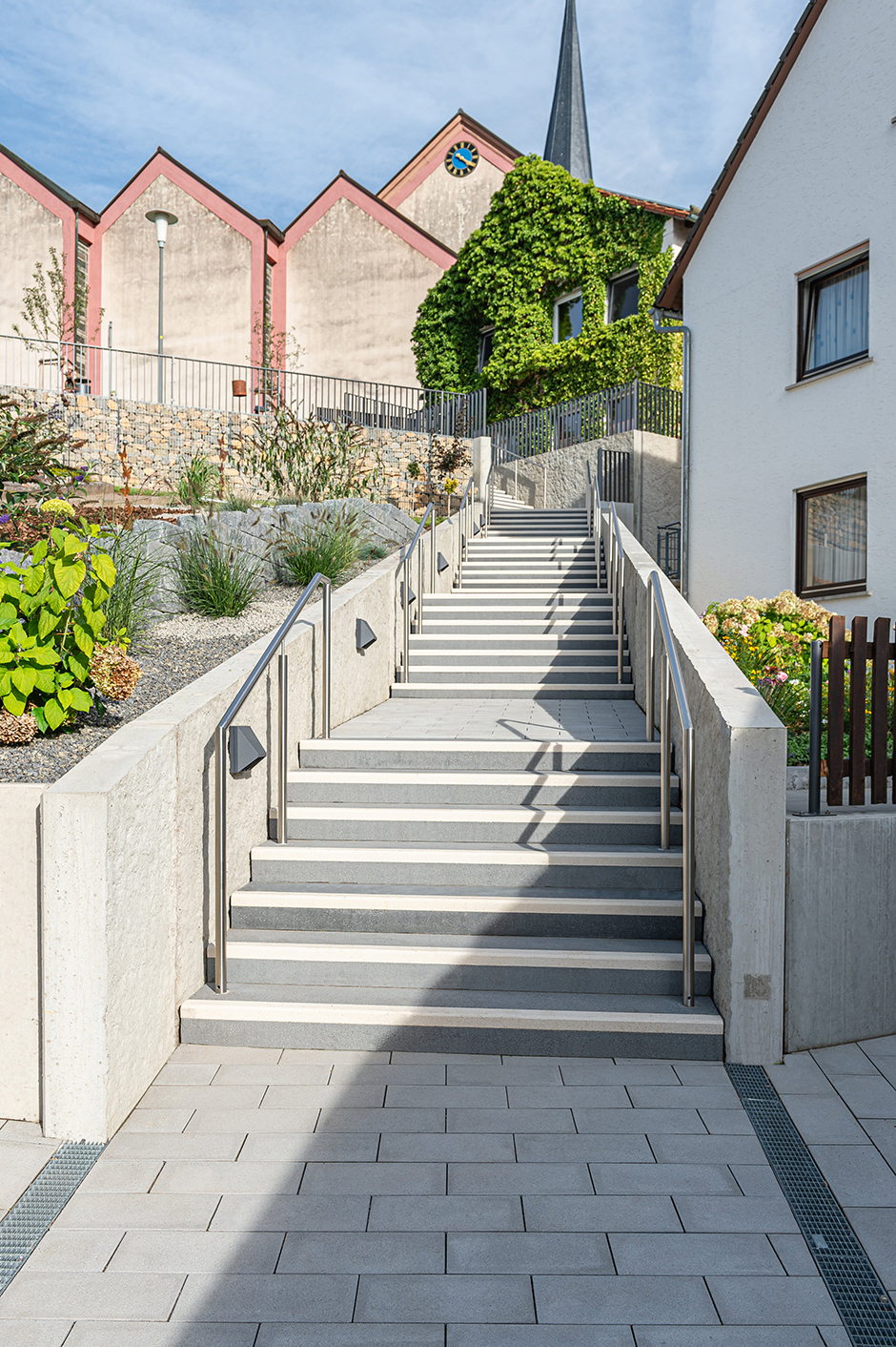 Optisch ansprechende Treppen und Stufen gleichen nicht nur Höhenunterschiede zwischen verschiedenen Bodenebenen aus. Sie lassen sich auch gezielt als Gestaltungselement einsetzen. Gleich, ob repräsentativ breite Treppenanlagen vor öffentlichen Gebäuden, Einzelstufen auf Fußgängerwegen in Grünanlagen oder spezielle Stufenvarianten für den barrierefreien Zugang: Die Stufen und Treppensysteme von FCN sind vielfältig einsetzbar wie formschön.