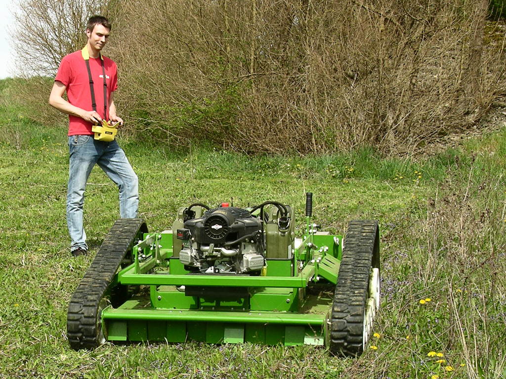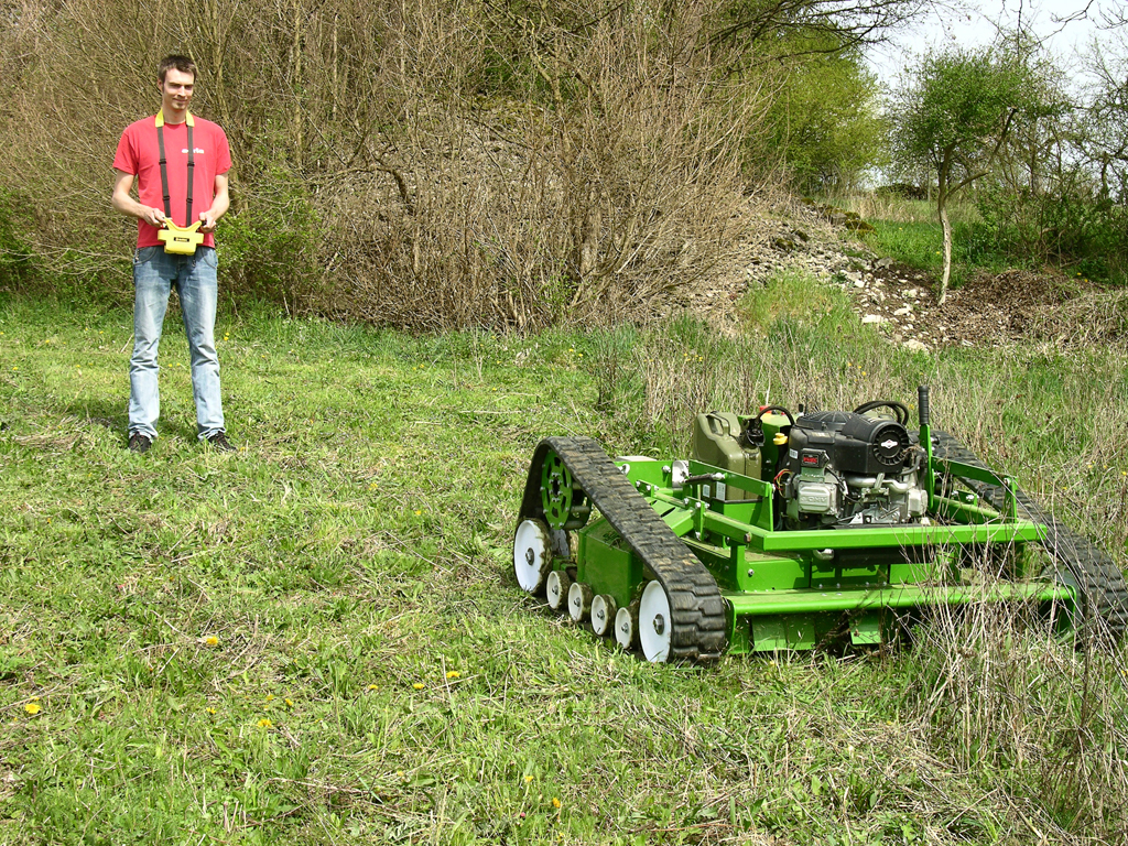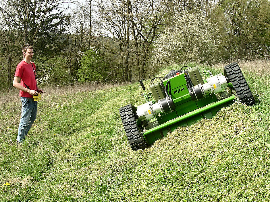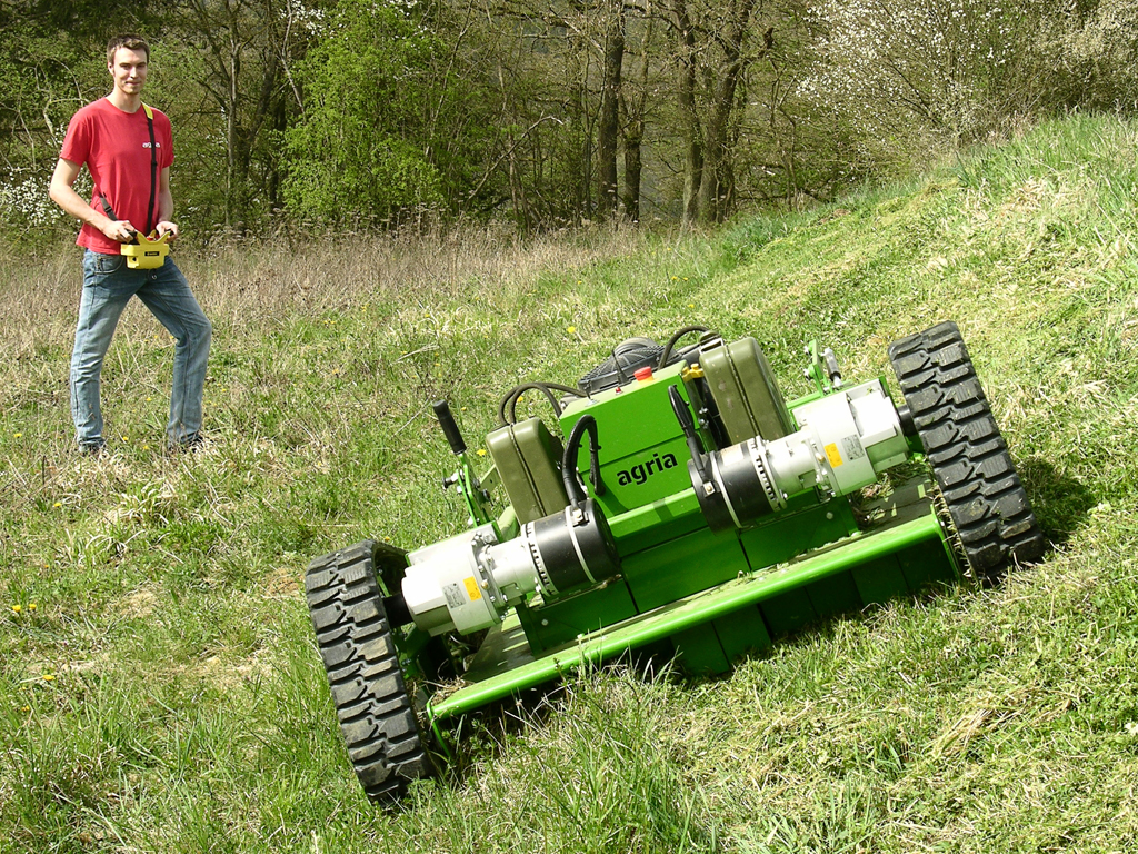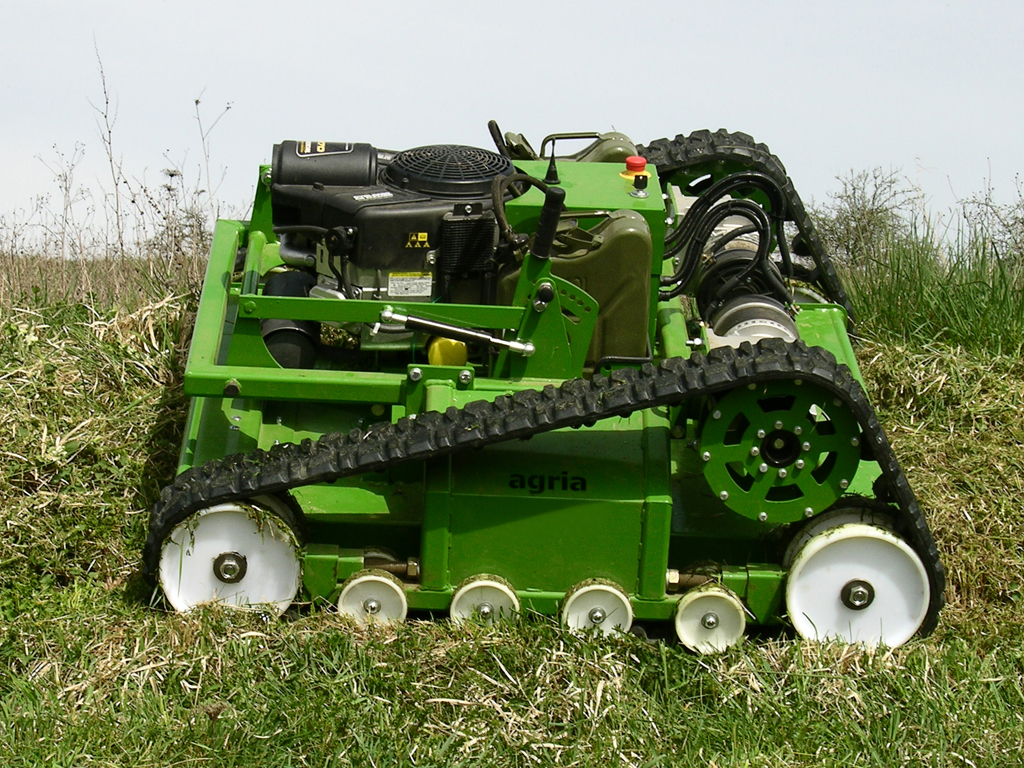 Die Agria-Werke GmbH werden dem Markt in Kürze den ferngesteuerten Sichelmulcher vom Typ agria 9600 vorstellen und damit das bestehende Programm der ferngesteuerten Mähtechnik nach oben abrunden. Die professionelle Maschine mit einer Arbeitsbreite von 112 cm eignet sich bestens für einen Einsatz auf extensiv zu pflegenden Problemflächen. Mit Raupenfahrwerk, tiefem Schwerpunkt und ausgeglichener Gewichtsverteilung ist die Maschine die erste Wahl für einen Einsatz an kritischen Hanglagen oder unzugänglichen Flächen. Leistungsstarke Elektrofahrantriebe sorgen auch unter schwersten Bedingungen für einen problemlosen Vortrieb des Mähgeräts. Ein kraftvoller Benzinmotor stellt ausreichend Leistung zum Mulchen von hohem Schnittgut zur Verfügung. Selbst Strauch- und Buschwerk wird fein zerkleinert und gleichmäßig abgelegt.