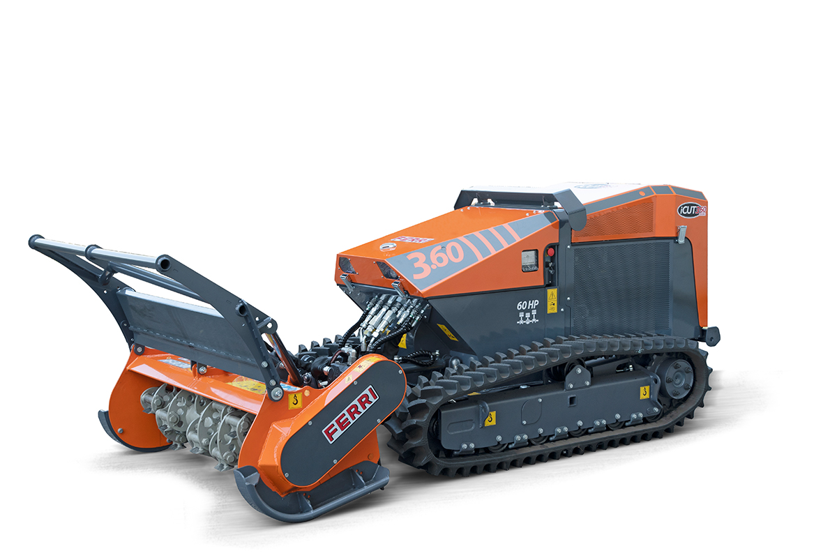 Ferri stellt auf der Agritechnica in Hannover vom 09. Bis 15. November die neue Generation der professionellen ferngesteuerten Geräteträger des Modells ICUT 3.60 vor. Ein neuer Drei-Zylinder-Turbo-Intercooler-Motor, Hatz 3H50, mit 60 PS verfügt über einen automatischen Kettenspanner, der stets für die richtige Kettenspannung sorgt und so Zuverlässigkeit sowie hohe Leistung garantiert. Auch unter schwierigen Bedingungen gewährleistet das System aus Hydraulikventilen nun eine lange Lebensdauer der Ketten und Komponenten.