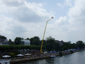 Last but not least wurde die Großbildleinwand am Römer für all die Fans, die den Ironman auf der Leinwand verfolgten, von einem Eisele-Kran gehalten.