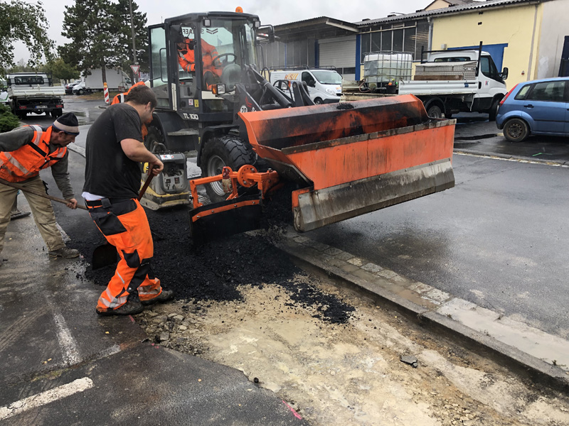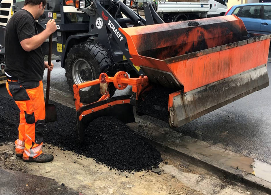Bis zu 80 cm Breite verfüllt die Optimas-Material-Verteilschaufel Asphalt. Das nutzt die FK Straßen- und Pflasterbau GmbH, um Kabelgräben wieder mit einer begeh- bzw. befahrbaren Oberfläche zu versehen. „Wir nutzen die „Finliner“-Schaufel jetzt seit gut einem Jahr“, sagt Florian Klug, Geschäftsführer von FK, „und wir können feststellen, dass wir bei unserer Arbeit deutlich schneller geworden sind. Ein weiterer Pluspunkt ist, dass durch diese Automatisierung die körperliche Belastung von Mitarbeitern um ein gutes Maß gesunken ist.“