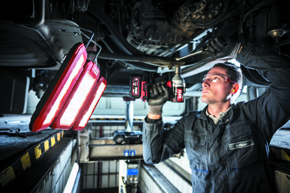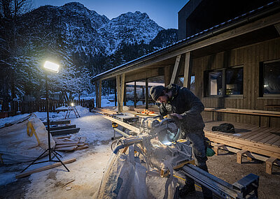 Renovierungsarbeiten in der Nacht oder in dunklen Räumen sind mit den neuen Akku-Baustrahlern CL 5000 10.8/18.0 und CL 10000 10.8/18.0 jederzeit möglich. Die effizienten LEDs erlauben lange Laufzeiten ohne ungeplante Arbeitsunterbrechungen. Dabei liegt die Farbtemperatur mit 5.000 Kelvin nah an einer natürlichen Lichtumgebung. Eine individuelle Anpassung der Helligkeit ist in fünf Stufen plus ECO-Modus möglich. Gleichzeitig unterstützt der große Schwenkbereich von 215 Grad eine gute Positionierung des Leuchtkegels.