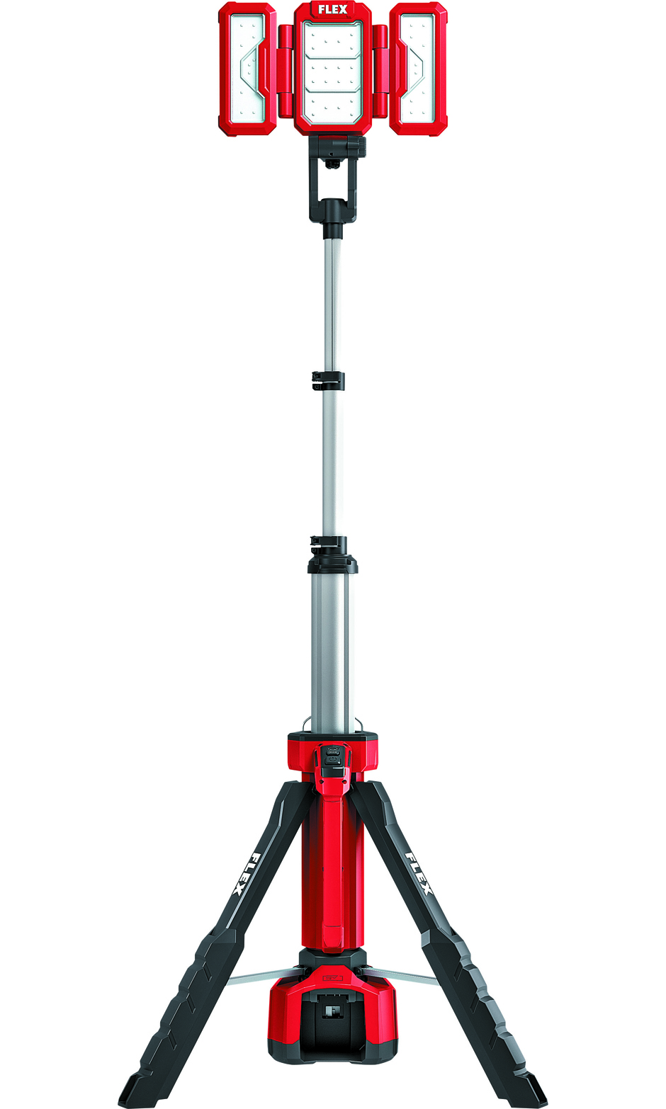 Gute Übersicht am Bau: Das ist der Anspruch der neuen Akku-Baustrahler der FLEX-Elektrowerkzeuge GmbH. Mit leistungsstarken, hellen LEDs, wahlweise mit 5.000 oder 10.000 Lumen, punkten die neuen Akku-Baustrahler CL 5000 10.8/18.0 und CL 10000 10.8/18.0. Der ebenfalls neue Akku-Baustrahler mit Stativ TL 4000 18.0/230 mit 4.000 Lumen im Multi-Panel-Licht lässt sich mit Akku oder Netzkabel betreiben.