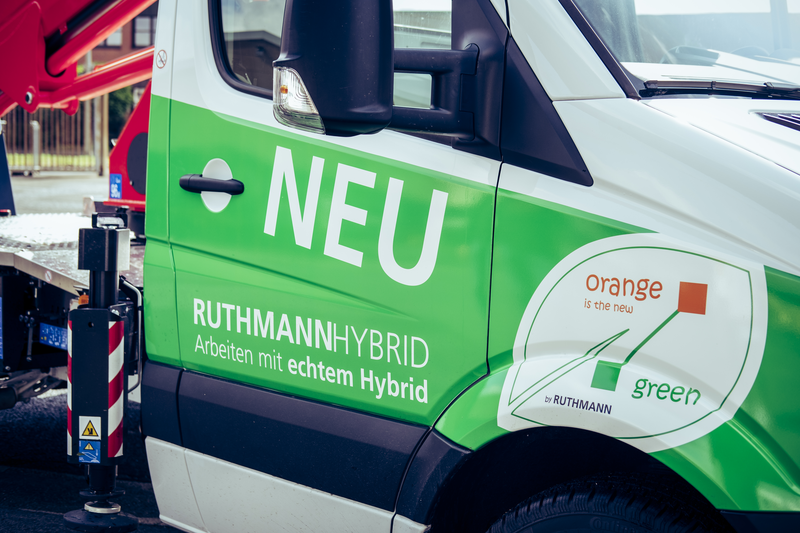 Dem Arbeitsbühnen-Hersteller RUTHMANN war bei der Entwicklung des ECOLINE Hybrid-Antriebs wichtig, dass kein Pseudo-Hybrid konzipiert wird. Das Ergebnis ist ein echter Hybrid-Antrieb für ECOLINE LKW-Bühnen: Beim Fahren des LKW vom und zum Einsatzort wird die Batterie des Hybrid-Antriebs geladen. Zusätzlich ist ein paralleles Aufladen und Arbeiten möglich, dank des integrierten Ladegeräts. Mit dieser Entwicklung befriedigt RUTHMANN die steigende Nachfrage nach alternativen Antriebssystemen und das zu einem unglaublich günstigen Preis. Fast geräuschlos und absolut CO2- und abgasfrei kann die Arbeitsbühne am Einsatzobjekt betrieben werden. Die Kapazität der Batterie reicht für eintägige Arbeitseinsätze von ca. 6 bis 8 Stunden und ist damit 100%ig alltagstauglich.
