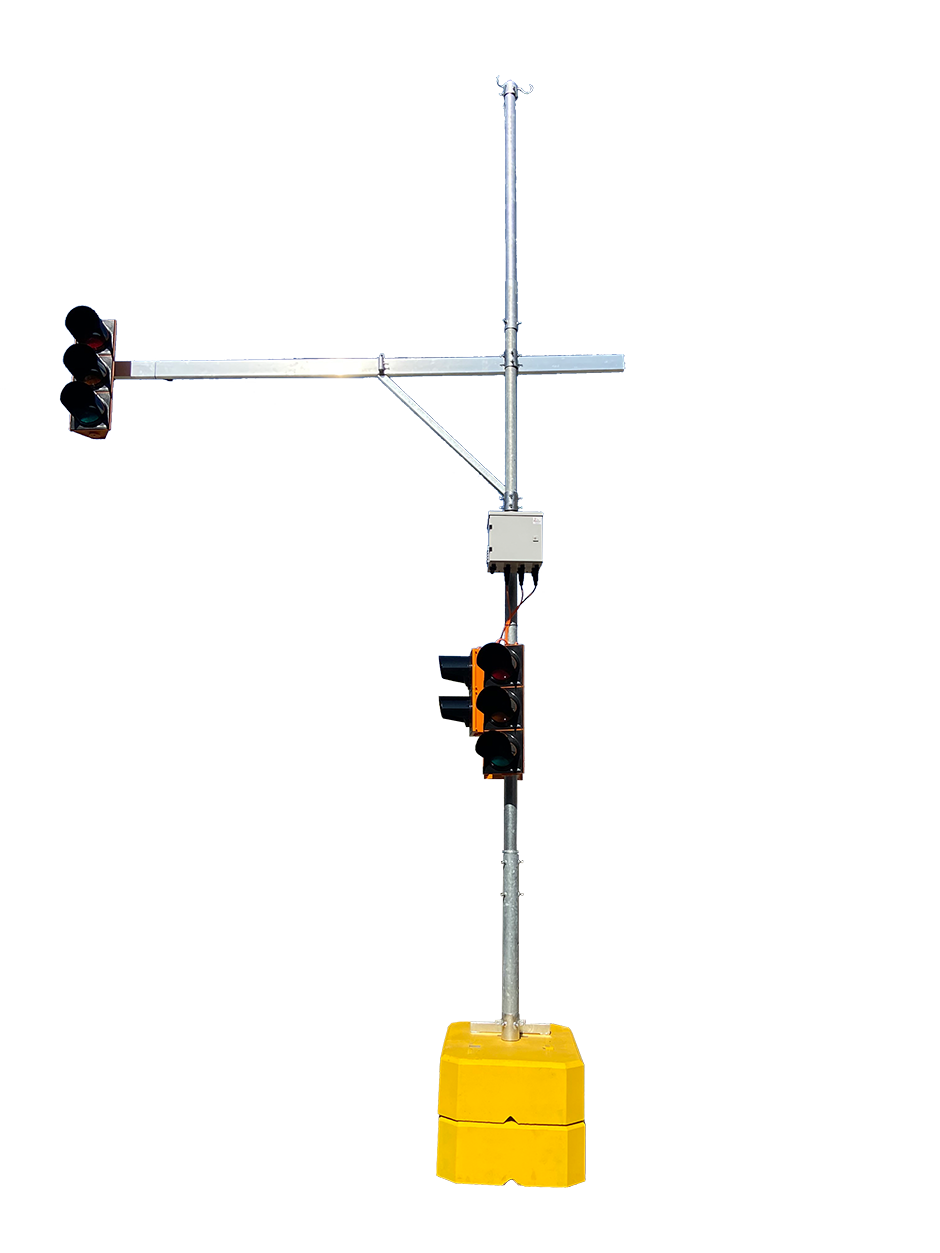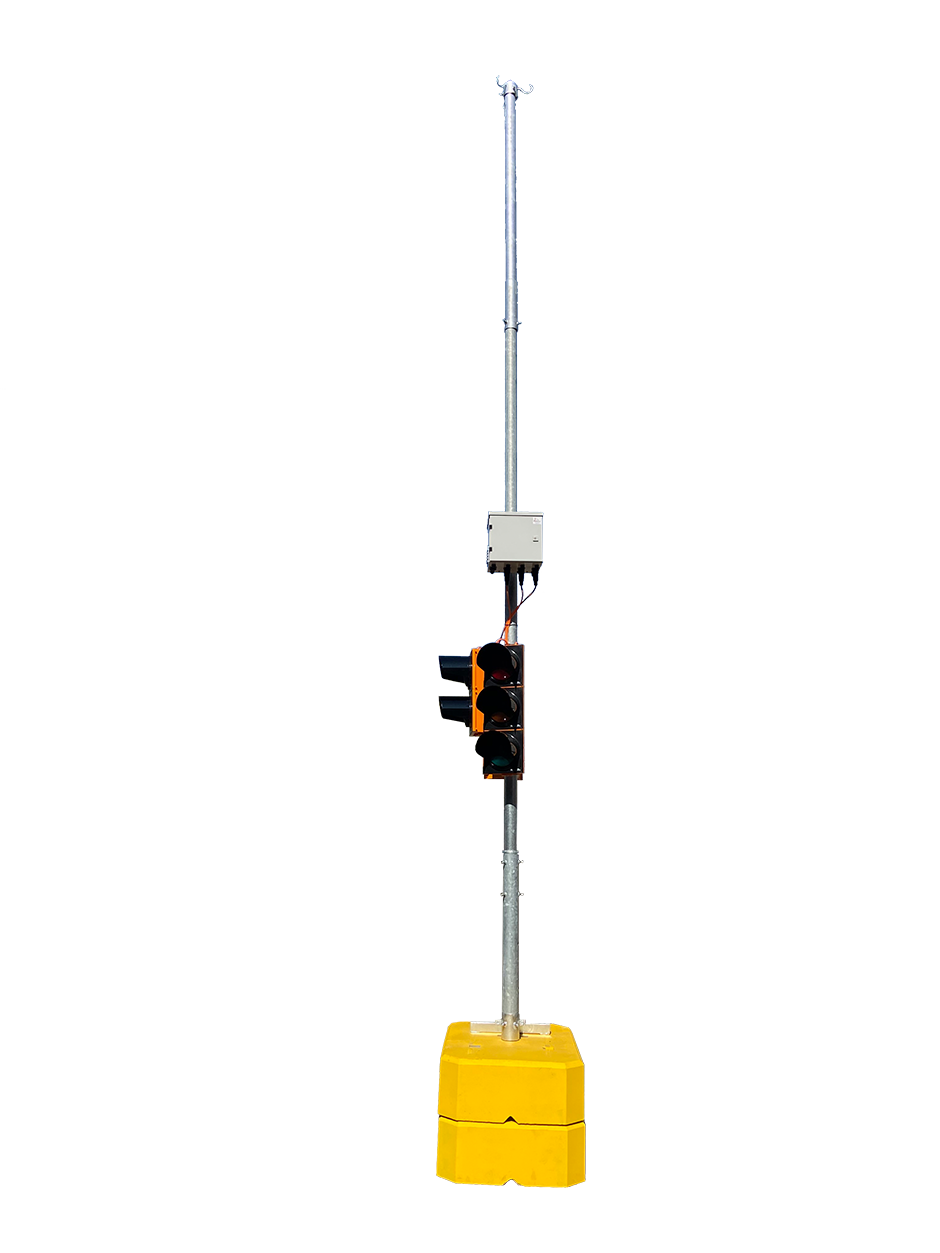Mobile Masten sind zum Aufbau temporärer Ampelanlagen an größeren Kreuzungen unerlässlich. Sie dienen als standfeste Aufstellvorrichtungen für Hochsignale und je nach Ausführung auch zur Anbringung von Überkopfsignalen. Zusätzlich sorgen sie für eine sichere Kabelüberspannung weit oberhalb der Reichweite von Fußgängern oder Fahrzeugen. Gemäß der technischen Lieferbedingungen für transportable Lichtsignalanlagen (TL-LSA) sind bei Kabelüberspannungen mindestens fünf Meter Durchfahrtshöhe bis 50 Volt und mindestens sechs Meter bei höheren Spannungen, wie z. B. der 230 Volt Netzspannung, vorzusehen.