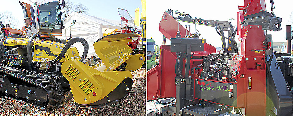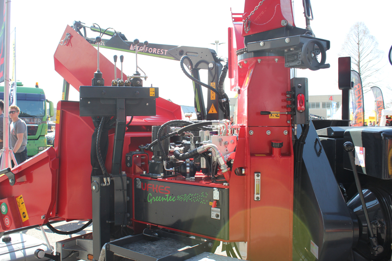 Beim Gang über das Messegelände, vorbei an Motorsägen, Holzhäckslern und zahlreichen anderen Forstgeräten, wird deutlich, worauf es den Herstellern – neben der Leistungsfähigkeit und Robustheit – bei ihren Produkten zusätzlich ankommt: Mit dem Einsatz ihrer Maschinen sollen die anfallenden Arbeiten nicht nur effizienter, sondern vor allem auch sicherer erledigt werden. So wie mit dem Cheetah 30 S von Ufkes Greentec. Der auf einem Fahrgestell – je nach Wunsch auf Raupe, Kugelkopfanhänger oder auch Lkw-Chassis – montierte Holzhäcksler ist zusätzlich mit einem Kran ausgestattet, der sich an der Maschine per Hebel steuern lässt. Somit braucht es keine weiteren Mitarbeiter, die das zu Hackschnitzel verarbeitende Gehölz dem Häcksler zuführen müssen. Die Greifzangen des Krans schließen die Äste und Stämme dabei so fest zusammen, dass nichts heraushängt. „Sie bündeln sie wie eine Zigarre“, vergleicht Reinhard Schültke, dessen gleichnamiges Unternehmen seit Anfang des Jahres Ufkes Greentec angehört, das Vorgehen. In kürzester Zeit werden somit große Mengen an Material in die 30 cm breite Öffnung des Holzhäckslers hineingezogen und mit Hilfe der hydraulischen Presskraft der Walzen sowie einer Hackscheibe zu Kleinholz verarbeitet. Auch in Sachen Abgasemissionen hat Schültke Neues zu berichten: „Ab sofort werden die Cheetah 30 S mit einem Kubota Final V Motor ausgestattet sein.“