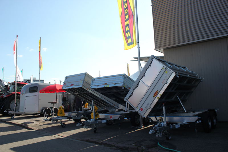 Umweltschonend ist auch das Schlagwort für die Böckmann Fahrzeugwerke GmbH. Denn immer mehr Forstunternehmen verzichten auf schwere Maschinen und greifen auf das Pferd zurück, wenn es darum geht, die gefällten Baumstämme aus dem Wald zu schaffen, wie Thomas Filser, Vertriebsleiter Süd, berichtet. Aus diesem Grund finden sich auf dem Stand des Anhänger-Herstellers nicht nur die beliebten Drei-Seiten-Kipper, sondern auch Pferdeanhänger. „Schließlich müssen die Tiere ja auch irgendwie zum Einsatzort kommen“, weiß Filser. Wie genau das Holzrücken mit Pferd aussieht, wird den ganzen Tag über in der Mitte des Freigeländes demonstriert.