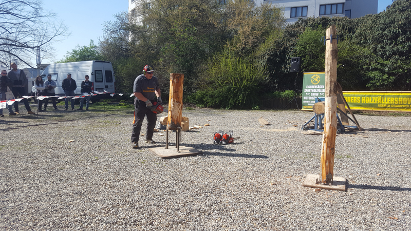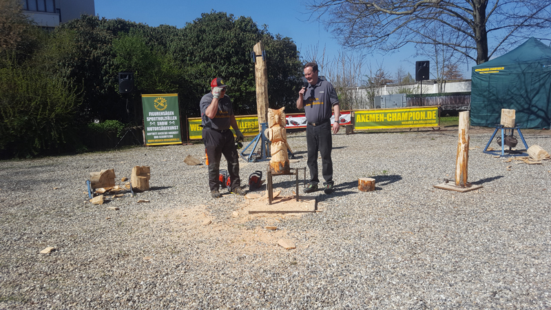 Ein weiteres Highlight auf der FORST live ist die Holzfällershow von „Axemen“ Werner Brohammer – vierfacher deutscher Meister der Stihl Timbersports Series sowie Guinness-Weltrekordhalter im Holzfäller-Triathlon. Ausgerüstet ist er dabei nur mit Axt und handelsüblichen Motorsägen des italienischen Herstellers efco – natürlich frisiert mit einem Brennauspuff. „Der Ferrari unter den Motorsägen“, erklärt Brohammer dem Publikum mit einem Lachen. Nachdem der deutsche Meister sein Können beim Springboard – bei dieser Disziplin muss der Baum über dem Stammstück gefällt werden, wofür Kerben in den Baum gehackt und Bretter darin als Standflächen befestigt werden müssen, um die Arbeitshöhe zu erreichen – bewiesen hat, geht es weiter zum Figurensägen. Das größte Exemplar war bislang vier Meter hoch, verrät Brohammer. Nach gerade einmal 20 Minuten hat sich der vormalige Baumstamm in eine Eule verwandelt. Es braucht viel Übung, bevor jeder Handgriff und Schnitt mit der Kettensäge so akkurat sitzt, verrät Brohammer im Anschluss.