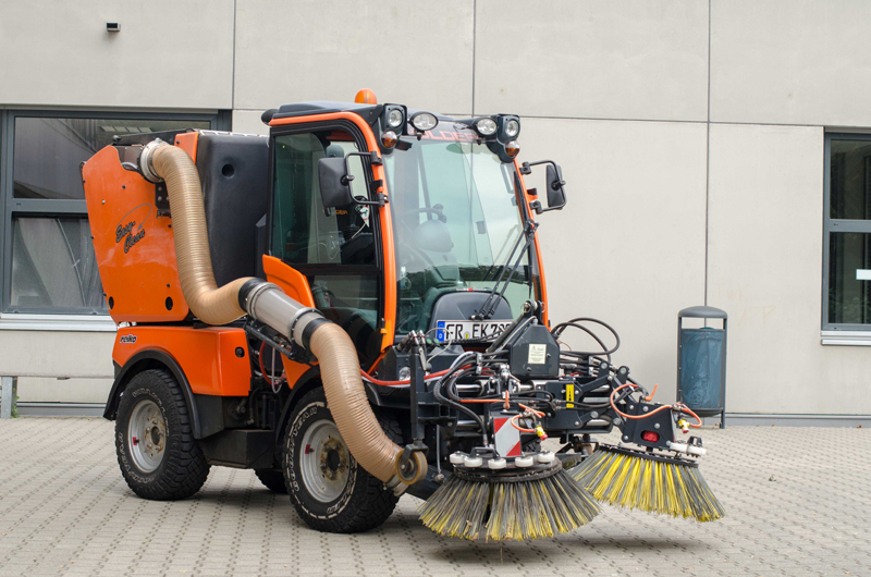 In der Reinigungsbranche geben überwiegend externe Faktoren den Takt vor: Freiflächen von Schulhöfen oder Kindergärten können nur dann gereinigt werden, wenn sie nicht oder nur gering frequentiert sind. Sportrasen- und Grünflächen sind wachstumsabhängig oder auf Anforderung zu mähen, vom Winterdienst gar nicht zu reden. „Flexibilität, eine intelligente Logistik und Effizienz sind das A und O. Die Margen sind eng, wir müssen uns auf das Equipment hundertprozentig verlassen können. Mit jedem Ausfall setzten wir Geld in den Sand“, sagt Edis Ferhati, Geschäftsführer von FeSo. Das Dienstleistungsunternehmen hat sich mit sieben Mitarbeitern auf Wegereinigungs-, Rasenpflege-, Winter- und Hausmeisterdienste spezialisiert, die Stadt Freiburg ist einer der großen Auftraggeber. Freiflächen von 57 Objekten, die über die gesamte Stadt verteilt sind, sind im Schnitt ein bis zweimal pro Woche zu kehren.