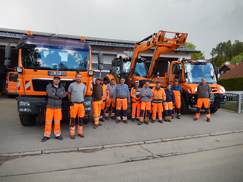 Im Zweischichteinsatz kümmert sich ein elfköpfiges Team des Bauhofs um ein etwa 120 Kilometer langes Wegenetz der Gemeinde. Tiefenbach hat eine Höhenlage von 300 bis 550 Metern und Steigungen bis zu 15 Prozent. Da es in den vergangenen Jahren zu vermehrten Einsätzen bei Glatteis kam, habe der Bauhof mittlerweile alle Fahrzeuge mit Profi-Schneeketten der Firma RUD ausgestattet, geht aus der Mitteilung hervor. Hierfür werden im Winterdienst der Profilgreifsteg und Supergreifsteg verwendet. Beide Kettentypen bieten durch eingebaute Greifstege im Laufnetz einen zusätzlichen, seitlichen Halt. Dies sei bei Glatteis extrem wichtig.