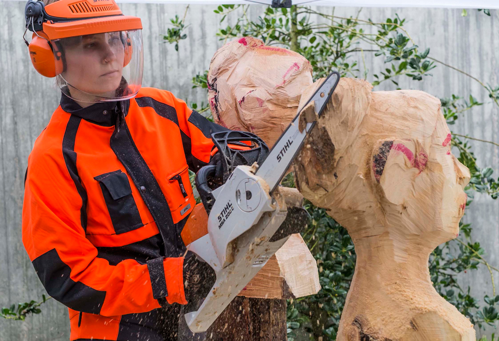 Ihre Stärken beweist die neue STIHL Carvingschiene besonders in Verbindung mit einer ¼“-Sägekette des Waiblinger Motorsägenherstellers. In dieser Kombination weist die Schneidgarnitur eine extrem niedrige Rückschlagneigung auf, was bei feinen Arbeiten mit der Schienenspitze qualitätsentscheidend ist und die Arbeitssicherheit erhöht. Abriebfeste Lasermarkierungen sorgen beim Eintauchen ins Holz für präzise Ausrichtung und bieten im Schnitt eine permanente Kontrolle über Eintauchtiefe und Winkel. Führungseigenschaften und Gewicht der neuen Schiene erzeugen genau das elegante Handling, das feine Konturen und schwierige Schnitte von anspruchsvollen Schnitzern, Baumpflegern und Obstbauern perfekt gelingen lässt.