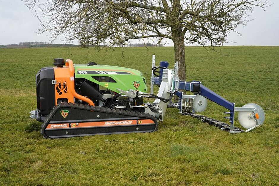 Zur Grünlandpflege in Steilhängen, Gräben oder unzugänglichen Gebieten werden vermehrt funkgesteuerte Raupen eingesetzt. In der Regel sind diese Geräteträger mit einem Schlegelmulchkopf ausgestattet, damit auch stärkeres Gestrüpp oder Geäst sauber verarbeitet wird. Durch das stärkere Umweltschutzbewusstsein in der Gesellschaft, Insektenschutz-Projekte und ökologische Auflagen der Auftraggeber werden nun auch immer öfters umweltschonendere Alternativen zum Mulchen nachgefragt.