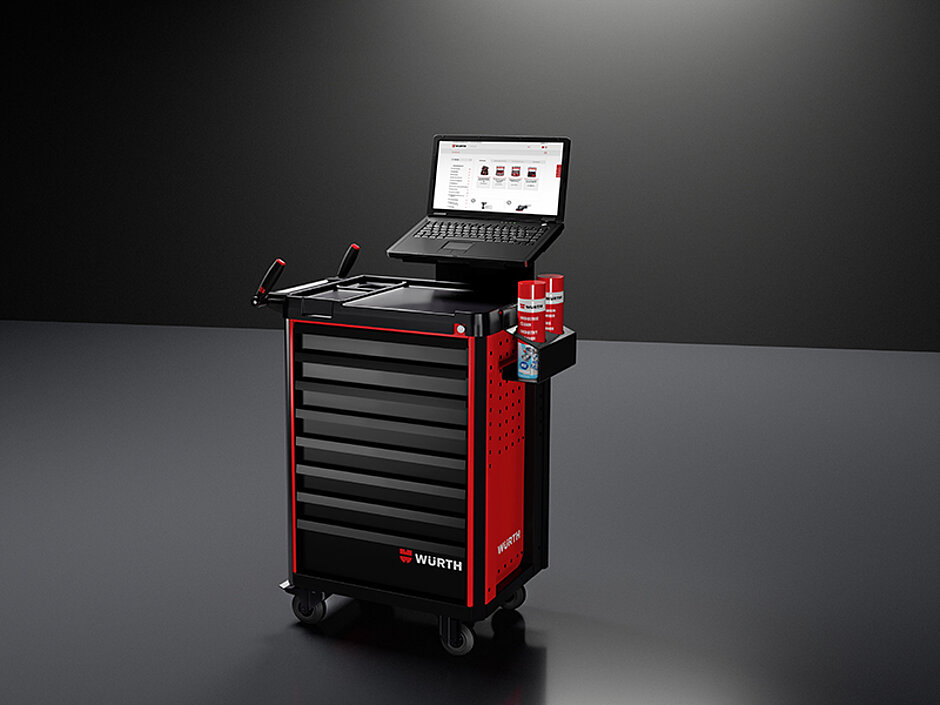 Die neuen System-Werkstattwägen Pro 8.4 von Würth zeichnen sich durch eine hochwertige Verarbeitung, besonderes Design, vielfältige Ausstattungsmöglichkeiten und das dreistufige Verriegelungskonzept für noch mehr Sicherheit aus. Hinzu kommen ein mit sechs bis acht Schubladen großzügig dimensionierter Stauraum, eine Belastbarkeit von 30 kg pro Schublade sowie eine Gesamt-Traglast von 250 kg. Mit Hilfe von ergonomisch geformten und für eine optimierte Kraftübertragung individuell einstellbaren Griffhörnchen sowie zwei Lenkrollen, lässt sich der Wagen auch mit voller Beladung ohne große Anstrengungen manövrieren. Dieser ist mit seinen Abmessungen genau auf das Systemmaß der ORSY-Welt von Würth abgestimmt, und kann daher mit nahezu allen entsprechenden Elementen bestückt werden. Auf diese Weise haben Nutzer alles was sie häufig benötigen in direkter Reichweite – ob Werkzeug, sortierte Kleinteile oder Maschinen.