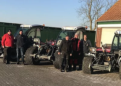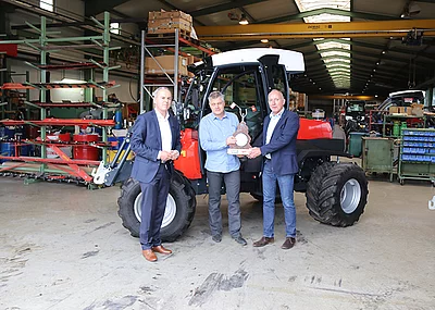 Der 75 PS/ 55 kW starke 2,5-Liter-Kohler-Commonrail-Motor mit 300 Nm Drehmoment bei 1500 U/ Min garantiert in Hanglagen bis 46 Prozent Steigung die einwandfreie Schmierung. Ein sicheres Fahren am Seitenhang ermöglicht der zweistufige hydrostatische Fahrantrieb mit den vier Lenkarten Vorderachs-, Hundegang-, Allrad- und Driftlenkung und dem Übersteuern der Hinterachse per Joystick. Große 500 mm breite 17-Zoll-Räder in verschiedenen Ausführungen übertragen die Leistung bodenschonend und kraftstoffsparend. Alle Wartungspunkte sind sehr gut zugänglich. Allen marktüblichen Anbaugeräten ist Die Dreipunkthydraulik in der Front mit 1.500 daN und im Heck mit 1.700 daN gewachsen. Eine zulässige Vorder- und Hinterachslast mit je 3.000 kg unterstreichen die robuste Bauweise des Hangtraktors bei 4.500 kg zulässigem Gesamtgewicht. Übrigens sind die Zapfwellenantriebe vorn und hinten serienmäßig verbaut.