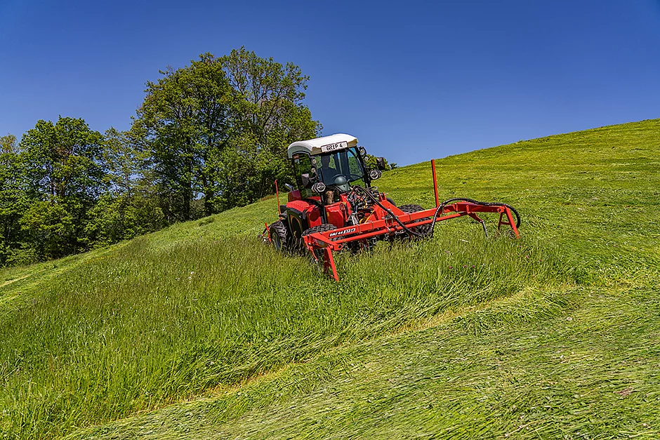 Der neue Sauerburger Hangtraktor Grip 4-70 wird gern zur Pflege von Grünflächen und Naturschutzarealen auch in Hanglagen eingesetzt. Aufgrund seines Eigengewichts von ca. 2.360 kg ist er auf wenig tragfähigen Böden für alle Pflegearbeiten sehr gut geeignet. Neben Winterdienst, Reinigen der Lichtraumprofilpfähle auf den Straßen und Wegen, dem Mulchen oder Mähen mit den insektenschonenden Sauerburger Doppelmessermähwerken nutzen einige Betriebe bereits Grünflächenkombinationen zum Vertikutieren, Striegeln, Walzen und Säen. Gerade in Zeiten einer drohenden Nahrungsmittelknappheit stellt sich die Frage, ob man auf Blühwiesen jetzt besser Futter für die Heugewinnung für Landwirte anbaut, damit diese ihre Felder statt mit Ackerfutter dann mit Brotgetreide bestellen können.