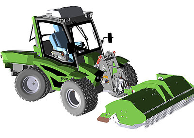 Die Fahrzeuge sind nicht nur Hangschlepper, die auch steile Flächen mit sehr hoher Kippstabilität meistern. Sie sind darüber hinaus auch vielseitig einsetzbare Geräteträger, die über eine hohe Bodenfreiheit verfügen. Durchzugsstark sind die modernen Kohler-Motoren und arbeiten mit stufenlosem Fahrantrieb, der die volle Motorkraft auf alle vier gleichgroßen Räder gleichmäßig überträgt. Mit vier Lenkmodi überzeugen die Allradfahrzeuge auch durch ihre hohe Bedienfreundlichkeit und ihren Fahrerkomfort mit schall- und schwingungsisolierter Kabine, einem Farbdisplay und der mittig platzierten Kabine, die für beste Übersicht sorgt. Auch eine Klimaanlage ist selbstverständlich integriert. Und die Bedienung ist für den Fahrer dank Multifunktionshebel und den ergonomisch angeordneten Bedienelementen sehr einfach. Auf diese Weise lassen sich selbst lange Arbeitstage gut bewältigen.