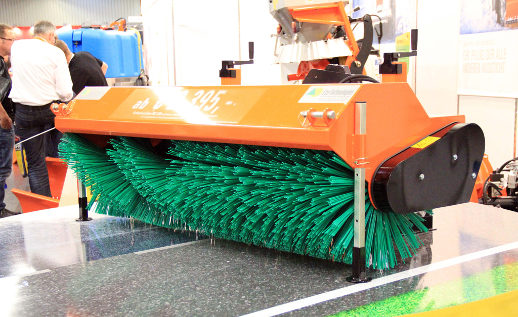 Mit der Eco-Kehrmaschine RS präsentiert Eco Technologies einen richtigen Allrounder: zur Beseitigung von Schmutz auf Straßen, Gehsteigen und Plätzen oder zum Schneekehren im Winter – der Anwender muss lediglich den Bürstenbesatz von Schmutzkehrwalze auf Schneekehrwalze tauschen. Die groß dimensionierten Stellspindeln mit Skala und Schwerlasträdern sollen die Einstellung des gewünschten Bürstendrucks erleichtern. Außerdem verspricht der Hersteller eine optimale Gewichtsverteilung durch den sehr kompakten Bau der Kehrmaschine. Der Antrieb erfolgt wahlweise hydraulisch oder über die Zapfwelle. Verfügbar ist das RS-Modell in Kehrbreiten von 1,2 bis 2,2 Meter.