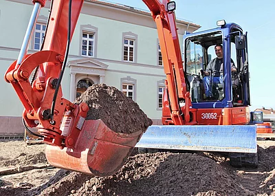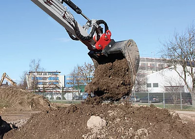 Stört zum Beispiel beim Aushub Gestein, ist der Löffel sekundenschnell beiseite gelegt und der Hydraulikhammer oder Greifer aufgenommen. Ebenso schnell kann der Baggerführer wieder zum Löffel und später zum Verdichter greifen. So ist es für ihn ein Leichtes, jedes hydraulische Werkzeug entsprechend seiner Bestimmung effizient einzusetzen. Das schont unterm Strich nicht nur die Investition, sondern optimiert auch den gesamten Prozess.
