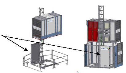 Lässt man mal die hohen Anschaffungskosten außer Acht, spielen hier natürlich vor allem Logistik und Transport eine beträchtliche Rolle. Weiter darf man natürlich auch nicht die auf Baustellen teils begrenzten Platzverhältnisse und die zeitaufwendige und manchmal komplizierte Montage von Großaufzügen vergessen. All diese Punkte wurden bei der Entwicklung des Multilifts berücksichtigt. Die komplette Grundeinheit wird z. B. als eine Einheit geliefert mit perfekten Maßen zur Containerverladung und Lkw-Transport. Vor Ort kann dann sofort mit dem Aufbau des Geräts begonnen werden ohne noch „Einzelteile“ für die Kabine zusammenzubauen. Absolut neu und einmalig ist der neue flache GEDA Kabeltopf, welcher bereits in die Umwehrung integriert wird. Diese patentierte Innovation gibt es momentan nur serienmäßig für die Multiliftreihe und bietet unzählige Vorteile – die nur GEDA bieten kann.