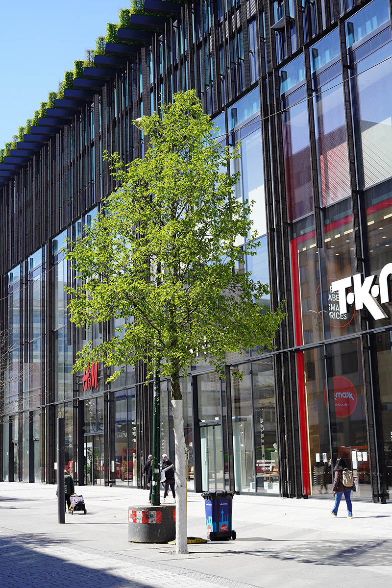 Zu den beliebtesten und bekanntesten Shoppingarealen in Deutschland gehört die neue Fußgängerzone in der Düsseldorfer Innenstadt. In den Sommermonaten litten die Flanierenden jedoch unter der brütenden Hitze. Zwischen den Straßenfluchten staute sich die Wärme, und Schutz boten nur die klimatisierten Verkaufsgeschäfte. Dies ist nun Vergangenheit: Nun schmücken neun amerikanische Gleditschien (Gleditsia triacanthos) die Schadowstraße. Sie bieten Sonnenschutz, filtern Schadstoffe aus der Luft und geben Feuchtigkeit an die Umgebung ab. Die Bäume, auch Lederhülsenbäume genannt, gelten als trockenheitsresistent und anspruchslos. Somit eignen sie sich sehr gut für einen Standort in Innenstadtlage, wo meist wenig Rücksicht auf die grünen Bewohner genommen wird.
