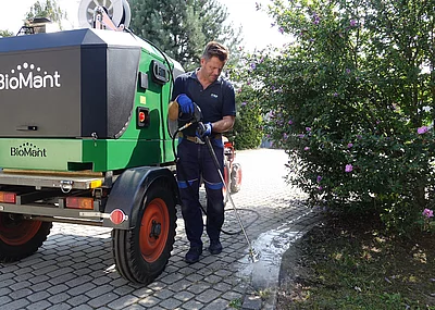Mit den BioMant Heißwassergeräten und einer passenden Teleskoplanze könne gegen den Eichenprozessionsspinner vorgegangen werden. Die Nester würden so mit dem heißen Wasser infiltriert. Dabei wird der Schädling verbrüht und durch hohe Temperaturen die Brennhaare zerstört und unschädlich gemacht. Das Nest kann dann entfernt werden. Für alle BioMant-Modelle sei vielfältiges und angepasstes Zubehör wie Handlanzen für Unkrautbekämpfung oder EPS-Behandlung sowie Anbau-Spritzsysteme verfügbar.