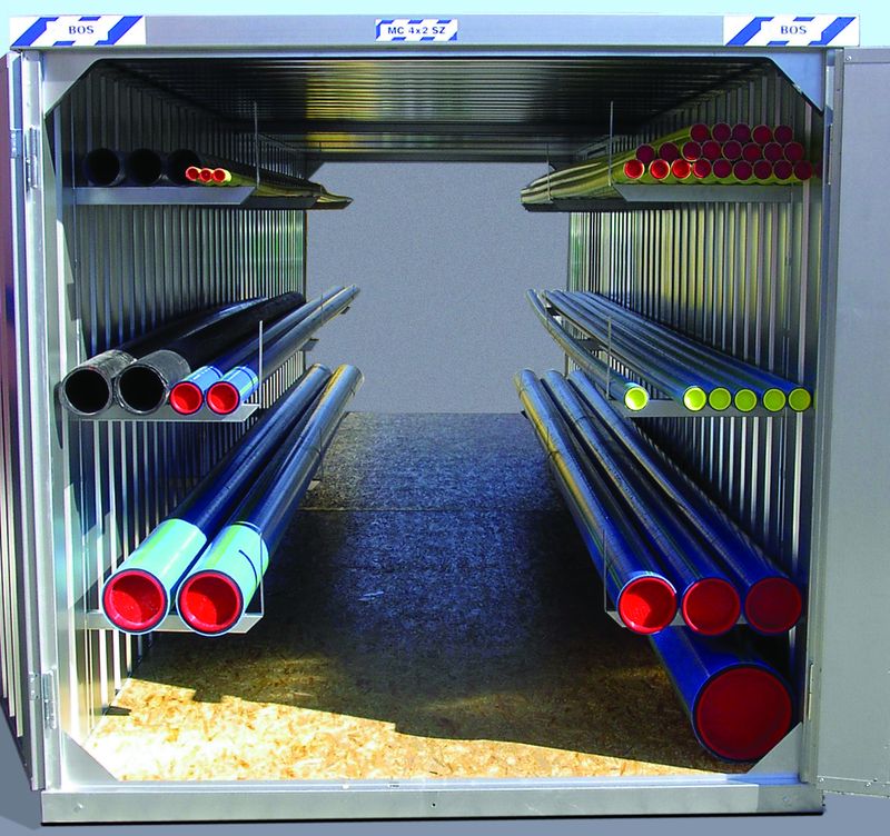 „Ich habe vor einiger Zeit mit einem Kunden gesprochen, der mir erzählt hat, dass im Bereich Heizung/Sanitär einige Firmen Probleme mit der Lagerung von Rohrleitungen haben“, berichtet Elisabeth Sobian von BOS Best Of Steel. Denn nicht selten weisen Container gerade einmal Maße von sechs Metern auf – die Rohre dagegen sind aber oftmals länger. „Dann werden die Türen ein wenig offengelassen, so dass die Rohre aus dem Container schauen“, weiß Sobian. Das brisante Thema Diebstahlschutz wird auf diese Weise allerdings hinfällig. Zwar gibt es auch Lagermöglichkeiten in größeren Ausmaßen: Handelt es sich dabei ebenfalls um Stahlcontainer, dann sind diese meist völlig unbeweglich und so massiv, dass nur unter erschwerten Bedingungen beispielsweise ein Standortwechsel möglich ist.