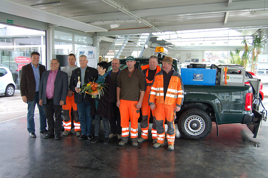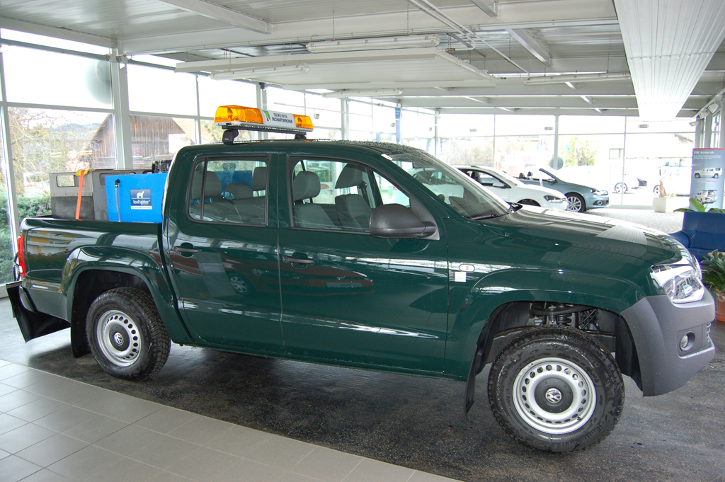 Gerade jetzt im Dezember kann es schon an einigen Stellen gefährlich glatt werden, obwohl der Niederschlag noch ausbleibt. Mit dem VW Amarok werden solche Stellen rasch ausgekundschaftet und der Glätte sofort entgegengewirkt – mit nur einem Knopfdruck! Im Gegensatz zum Einsatz von herkömmlichen Kommunaltraktoren geht das aber wesentlich schneller – schließlich sind im Ortsgebiet 50km/h erlaubt! Außerdem bedeutet dies eine erhebliche Kostenreduktion, da die Kommunalgeräte nicht jedesmal zum Einsatz gebracht werden müssen!