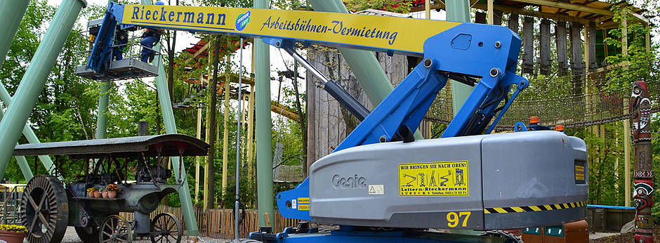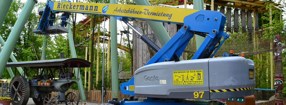Für Arbeiten an den niedriger gelegenen Bereichen des Stahlgerüsts und um das Projekt mit einer zweiten Bühne zügig voranzutreiben, stellte Rieckermann die bewährte Genie S-85 Teleskoparbeitsbühne aus seiner Mietflotte bereit. Dieses verläßliche Modell vereint herausragende Manövrierfähigkeit und Produktivität mit einer Arbeitshöhe von 28 m, einer seitlichen Reichweite von 23,32 m sowie einer Steigfähigkeit von 45 % für Geländeneigungen.