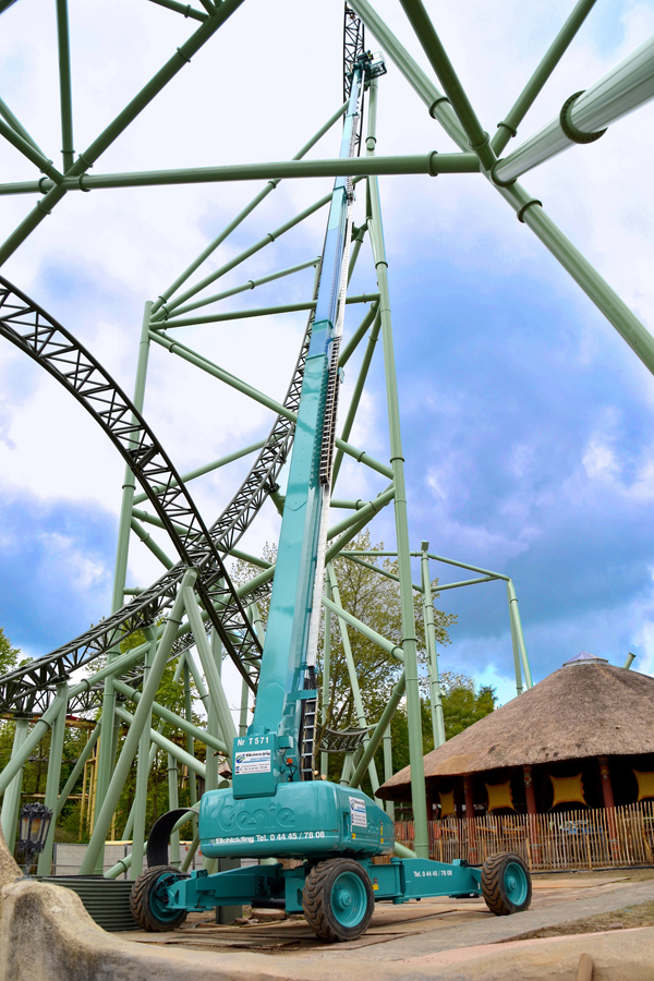 Nach anderthalb Jahren der Planung und Vorbereitung war es am 1. Juli um exakt 12 Uhr mittags endlich so weit: Die ersten Passagiere der neuesten Attraktion im HANSA-PARK holten tief Luft, als „Der Schwur des KÄRNAN“ – eine der drei höchsten jemals in Europa gebauten Hyper-Coaster-Achterbahnen – Fahrt aufnahm. Während sie einen 67 m tiefen Absturz und eine rasante Fahrt mit viel Airtime erleben, dürfte den Fahrgästen kaum bewusst gewesen sein, dass zwei Genie Teleskoparbeitsbühnen SX-180 und S™- 85 hinter den Kulissen einen wichtigen Anteil daran hatten, dass das von den Medien begleitete Soft-Opening des Family-Thrill-Rides pünktlich vonstatten gehen konnte.
