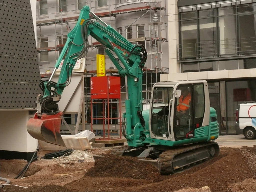 Die Stadt Dillingen/Saar, Standort der Dillinger Hütte, die hier im Jahr 1,425 Millionen Tonnen Stahlblech produziert, will ihr Stadtbild attraktiver machen. Zu diesem Zweck erhielt die Dittgen Bauunternehmung aus Schmelz den Auftrag, einen 2.500 m² großen Innenhofbereich an der Merziger Straße umzugestalten. Bei dieser Baumaßnahme kann der bärenstarke Bewegungskünstler Takeuchi TB 290, ein Kompaktbagger der 8,5 t Klasse, alle seine Fähigkeiten einsetzen. Besonders notwendig ist bei dieser umfassenden Bauaufgabe das permanente Wechseln von mechanischen wie hydraulischen Anbaugeräten. Sie müssen in wirklich engen räumlichen Verhältnissen mit komplizierten Arbeitswinkeln eingesetzt werden. Doch dafür ist der Takeuchi Bagger konstruiert.