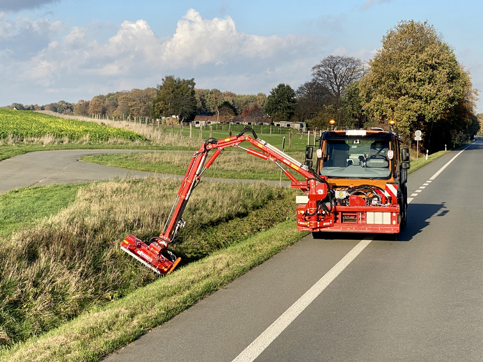 Für den schonenden Mähvorgang verfügt die Tastrolle über zwei verschlankte Bereiche. An diesen Stellen rollt der Mähkopf drucklos über den Boden, wodurch Kleinlebewesen geschont werden. Durch den vorgebauten Ökostriegel und die verstellbare Schnitthöhe des Mähkopfes auf bis zu 15 Zentimeter, werden sich im Aufwuchs befindende Fluginsekten, am Boden sitzende Vögel, Kleinlebewesen oder auch Jungwild aufgeschreckt und können fliehen.