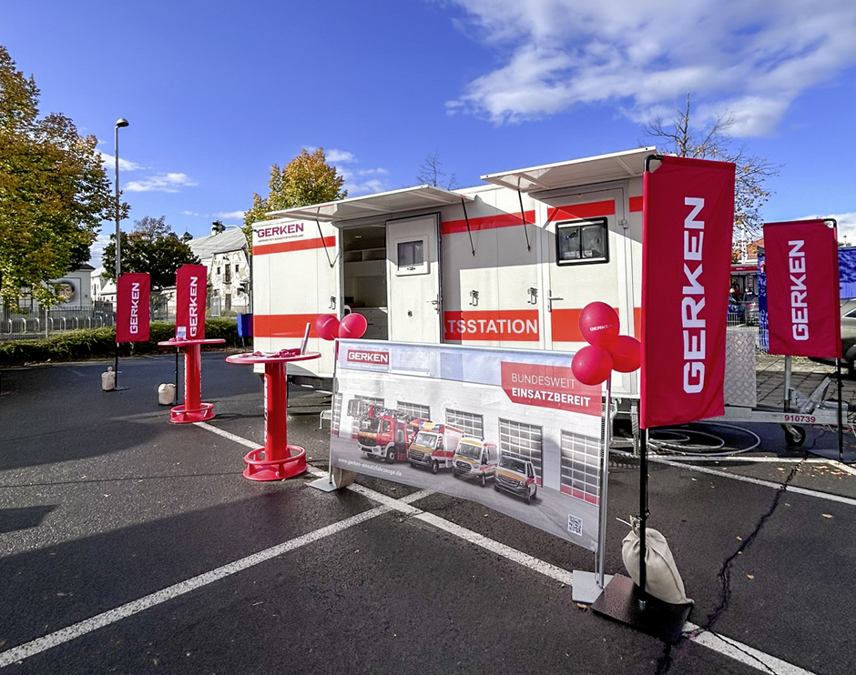 Auf einer Fläche von 50 m² im Außengelände der Messe präsentierten die Düsseldorfer Experten das breite Leistungsspektrum an Einsatzfahrzeugen und -möglichkeiten, die gezielt auf die Bedürfnisse von kommunalen und staatlichen Einrichtungen sowie Rettungsdiensten, Betriebsfeuerwehren und ehrenamtlichen Organisationen abgestimmt sind. Insbesondere die mobile Sanitätsstation, zu der GERKEN das Fachhandwerk und Vertreter unterschiedlicher Träger und Dienststellen zum Austausch eingeladen hatte, war ein Highlight der Veranstaltung. Dieses innovative Konzept erlaubt es einer Vielzahl von Institutionen und Akteuren, im Bedarfsfall schnell und effizient auf medizinische Notfälle zu reagieren.