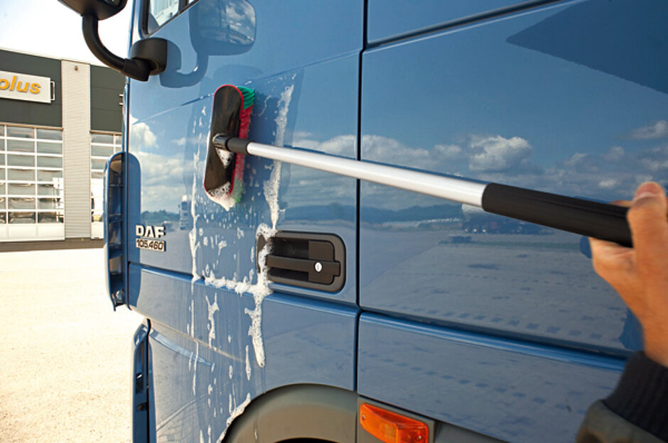In den ersten warmen Frühlingstagen hat der Fuhrpark eine gründliche Rundum-Pflege verdient. Gestartet wird mit einer Fahrzeugwäsche. Wichtig sind vor allem der Unterboden und die Radläufe. Dort setzt sich das aggressive Streusalz fest. Eine zusätzliche Handwäsche an Falzen, Kanten und Ritzen ist empfehlenswert, da diese bei der maschinellen Wäsche eher vernachlässigt werden. Zur Handreinigung sollte ein weicher Schwamm oder eine weiche Waschbürste benutzt und die Utensilien in kurzen Abständen gründlich ausgespült werden. Festsitzende Schmutzreste können sonst Lackschäden verursachen. Zum Schutz der Haut empfiehlt sich das Tragen von Waschhandschuhen.