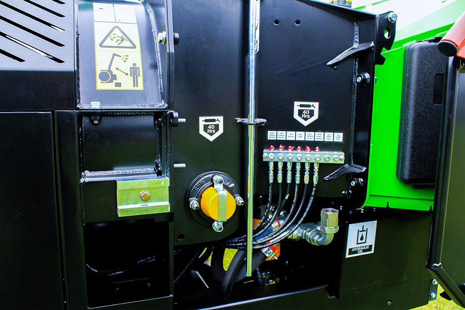 Mit neuer Hackscheiben-Geometrie sind die GreenMech Disc-Messer jetzt noch effizienter und bieten eine Verarbeitungsleistung von sieben Tonnen Hackgut pro Stunde. Sechs kreisrunde Messer sitzen fest auf der massiven Hackscheibe und werden mit entsprechend mehr Wucht durch das Material gezogen. Fokus liegt hier auf dem Schneiden anstelle des Hackens. So wird Kraftstoff gespart und das Gehör geschont. Das Gegenmesser ist zweifach verwendbar und ebenso schnell zu drehen. Werden die Discs regelmäßig gedreht und nachgeschliffen, erreichen Anwender bis zu 900 Stunden Standzeit pro Messersatz. Mit wenigen Handgriffen ist die Hackeinheit geöffnet und macht den Messerwechsel zum schnellen Eingriff.