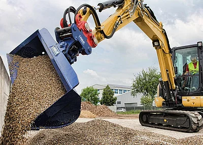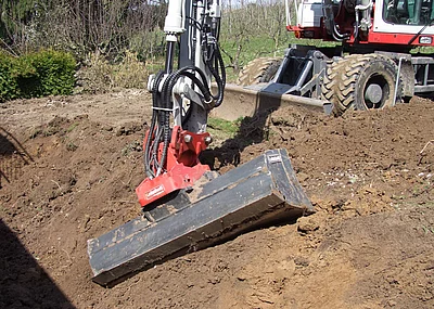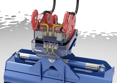 Wer seinen Bagger noch flexibler machen will, sollte die Präsentation des Lehmatic-Schnellwechselsystems in Kombination mit dem hydraulischen Rototilt/Tiltrotator nicht versäumen. Der Tiltrotator funktioniert wie ein Handgelenk zwischen Bagger und Werkzeug. Sein integriertes Steuerungsystem ermöglicht endlose 360 Grad-Rotation und Schwenken bis zu 40 Grad in zwei Richtungen. Drehen, Schwenken und Zusatzfunktionen sind dabei sehr präzise simultan steuerbar. Der Bagger benötigt weniger Raum, muss auch nicht mehr umgesetzt werden und kann dabei viele Aufgaben gleichzeitig erledigen. Unnötige Wartezeiten und zeitraubende Handarbeit entfallen und die Auslastung der Maschine steigt enorm.