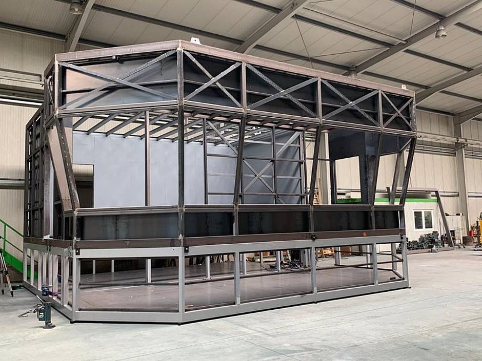 „Die Raumlösung ist hoch komplex und unterliegt einem – für Schunk üblichen – hohen Qualitätsstandard. Der Einlaufsteuerstand besteht überwiegend aus Stahl, das macht das Modul sehr robust – perfekt für die Gegebenheiten vor Ort“, betont Steffen Trodler, Projektleiter von Schunk Mobilraum.