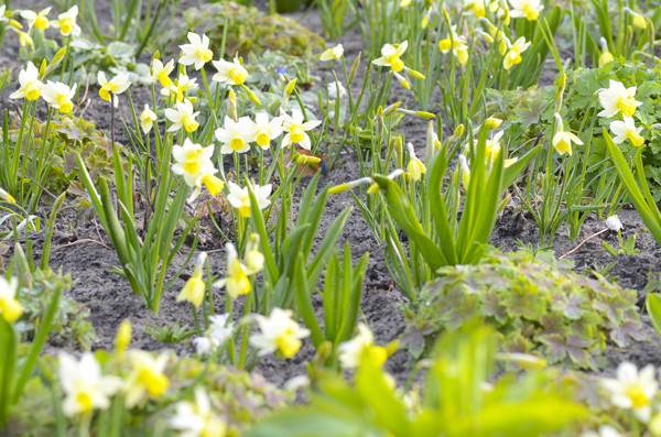 Da es eine Saison dauert, bevor die Bepflanzung zugewachsen ist, ist es ratsam, zusätzliche Maßnahmen gegen Unkraut zu ergreifen (wie beispielsweise das Auftragen einer Mulchschicht). Häufig werden Holzschnitze oder Baumrinde verwendet. Diese Materialien werden relativ schnell zersetzt, was aber für die Stauden nach der ersten Saison kein Problem ist. Ein Nachteil des sich zersetzenden Mulchs ist, dass dadurch das C/N-Verhältnis im Boden gestört wird. Mulch enthält viel Kohlenstoff und entzieht dem Boden für die Zersetzung Stickstoff. Dadurch kann sich die Bepflanzung gelb verfärben.