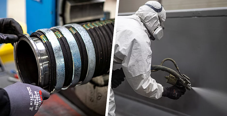 Ebenfalls bieten die Spezialisten eine schlagkräftige Lösung zur Versiegelung, Verfugung und Reparatur von nahezu allen Oberflächen. „Mit der Dienstleistung GrüloCoat Systeme bieten wir unseren Kunden hochwertigen Verschleißschutz an“, so Geschäftsführer Dirk Loske. „Ob Trichter oder Prallbleche: mittels Heißgummierung weisen diese eine längere Standzeit auf und die Lärmbelastung ist deutlich geringer. Für die Abwasserindustrie ist eine Beschichtung mit Polyurea interessant. Dieses besitzt eine extreme mechanische und chemische Stabilität. Zudem sind wir zertifizierter WHG-Fachbetrieb.“