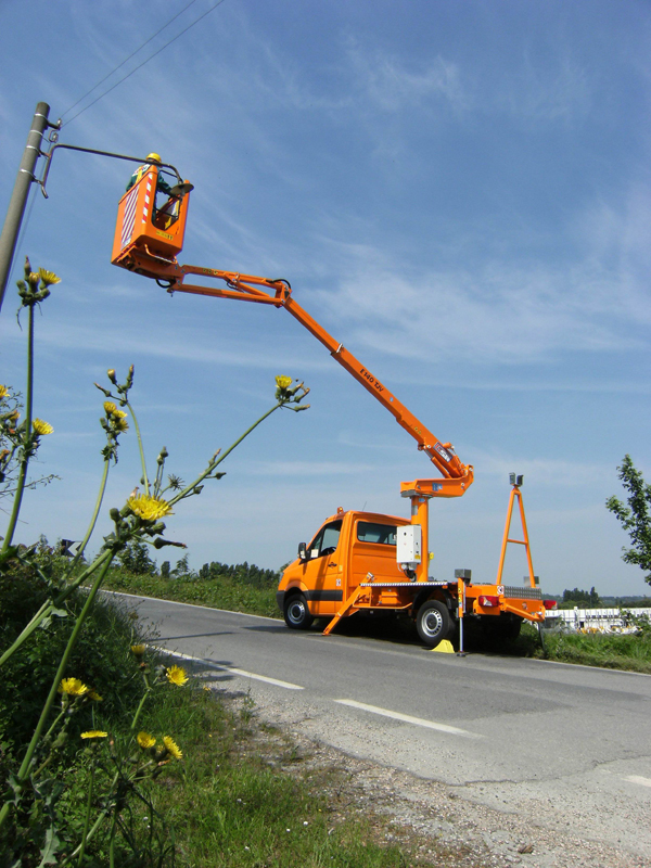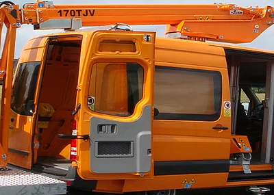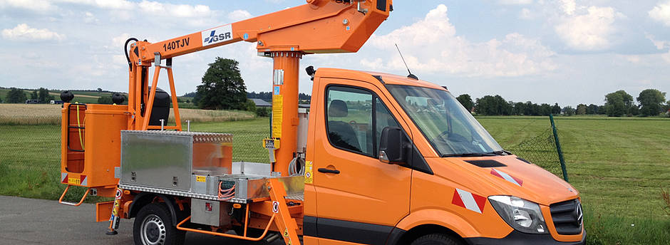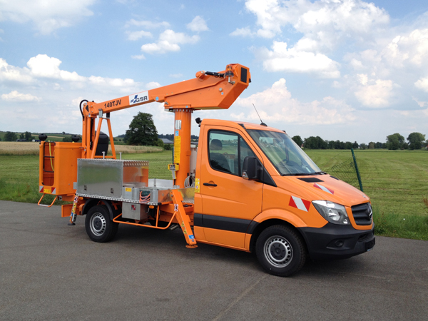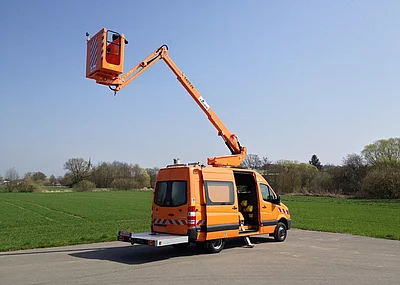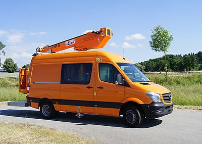 Die seit Jahren bewährte Kastenwagen-Serie von 11,5 bis 17 m Arbeitshöhe von GSR wird seit geraumer Zeit auch als Compact-Variante auf MB Sprinter / VW Crafter Fahrgestell mit 4 Stützen angeboten.