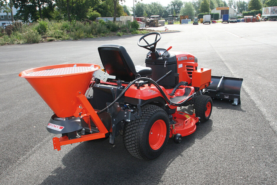 Das von Kersten angebotene „Winterdienstpaket“ umfasst verschiedene Schneeschilder, Schleuderstreuer und Schnee-Kehrmaschinen. Letztere bieten unter anderem den Vorteil, dass bei erstem Schneefall die Wege frei gefegt werden und deshalb nicht gestreut werden müssen. Erst bei größeren Schneemassen kommt das Schneeschild zum Einsatz, unterstützt von einem von Kersten selbst entwickelten Schleuderstreuer. Dieser kann das Streugut so präzise regulieren, dass die Wurfweite von 50 cm bis 4 Meter reicht. Der Trichter fast ca. 70 Liter Streugut und kann somit, je nach Einstellung und Streumaterial so einige Wege von Glatteis frei halten, ohne nachladen zu müssen.