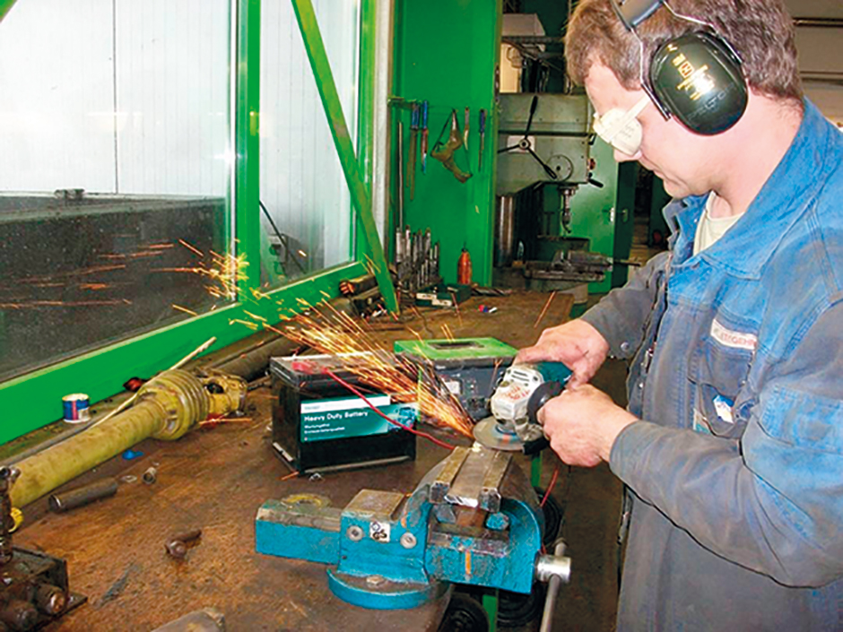 Gerade bei neueren Maschinen kommen Anwender ohne Fachwissen und Spezialwerkzeug schnell an ihre Grenzen. „Seien Sie ehrlich zu sich selbst. Reichen Ihre Kenntnisse aus, Fahrzeuge oder Maschinen zu reparieren? Haben Sie das entsprechende Werkzeug?“, so Strixner. Bevor es an die Arbeit geht, gilt immer: Maschine stillsetzen, deren Stillstand abwarten und Zündschlüssel abziehen. Bei Arbeiten am Motor oder an elektrischen Bauteilen muss die Batterie, „mit der Masse zuerst“, so Strixner, abgeklemmt werden. „Kühl- und Hydraulikflüssigkeit, Lacke und Motorenöl sind Gefahrstoffe“, ergänzt Strixner. „Sie sind bei Kontakt schädlich für Haut, Augen und Atemwege. Nutzen Sie unbedingt die geeignete Persönliche Schutzausrüstung.“