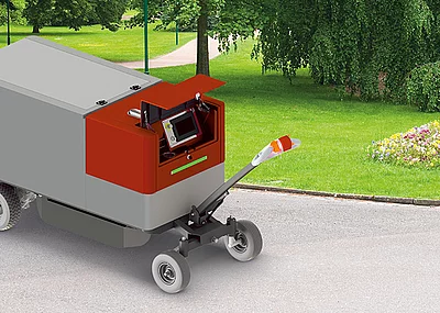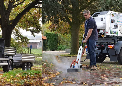 Dabei punktet der Citymaster 2200 aber nicht nur als professionelle Kehrmaschine. Auch bei der Nassreinigung großer und ebener Pflaster- und Natursteinflächen spielt er sein Können aus. Über ein Schnellwechselsystem lässt sich die Kehrtechnik einfach und zügig abmontieren und ein Anbauschrubbdeck anbauen. Damit können selbst hartnäckigste Verschmutzungen von den glatten Oberflächen entfernt werden. Das Schmutzwasser wird direkt über einen speziellen Saugmund in den Edelstahlbehälter aufgenommen. Sollen Straßen großflächig gereinigt werden, kann dazu auch eine Schwemmanlage angebaut und ein großer Wassertank anstelle des Edelstahlbehälters aufgesetzt werden.