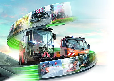 Ebenso lassen sich professionelle Silo-Streugeräte oder eine Solesprühanlage anbauen und damit Eis und Schnee effizient bekämpfen. Dank kurzer Umrüstzeiten ist auch ein unvorhergesehener Wintereinbruch ebenso schnell zu bewältigen wie ein geplanter Wechseleinsatz.