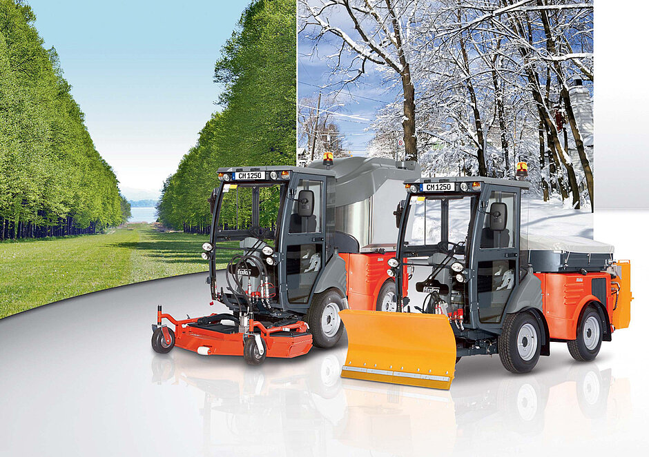 Nach dem Winter sind diese Fahrzeuge sofort wieder bereit für den nächsten Einsatz: Kehren, Schwemmen, Wildkrautbürsten, Hochdruckreinigung. Auch Ölspurbeseitigung, Sinkkasten reinigen oder Arbeiten mit Hubarbeitsbühne. Oder die Entsorgung von Laub und Abfall. Ebenso wie die Grünpflege mit Mähen, Schneiden, Zerkleinern und Gießen. Und die Straßenunterhaltung, von der Leitpfostenreparatur, über das Schilderwaschen bis hin zur Reparatur mit Asphalt-Thermo-Container. Und last but not least, das Transportieren mit Dreiseitenkipper, Absetzkipper, Anhänger – auch in Kombination mit einem Ladekran.