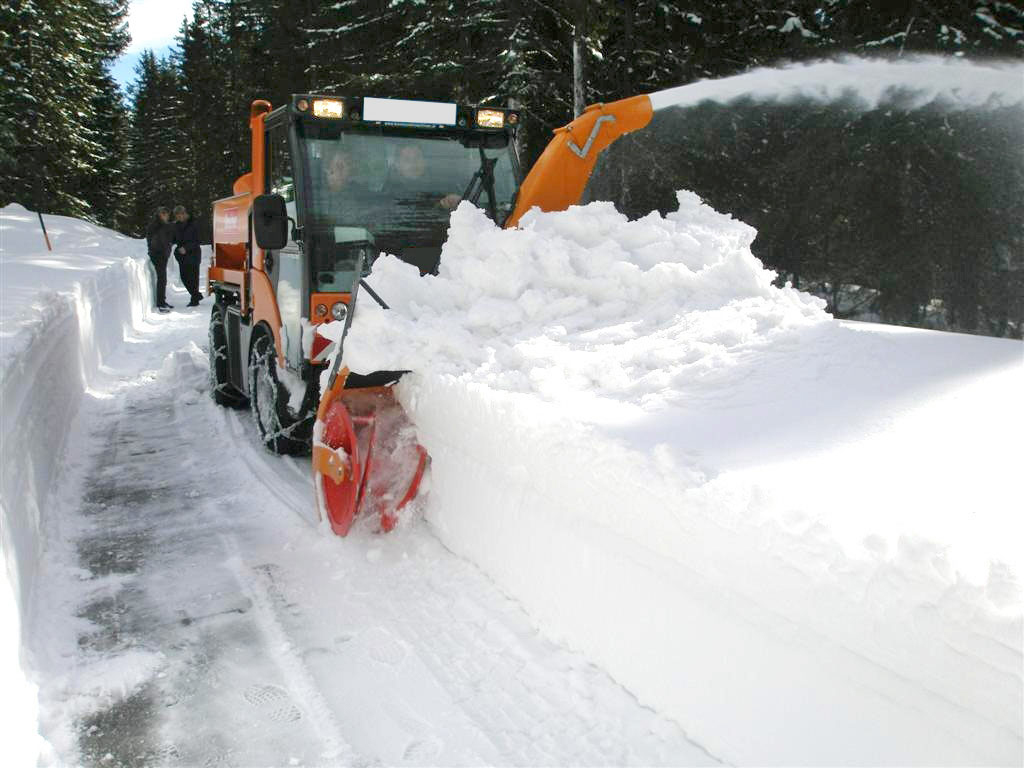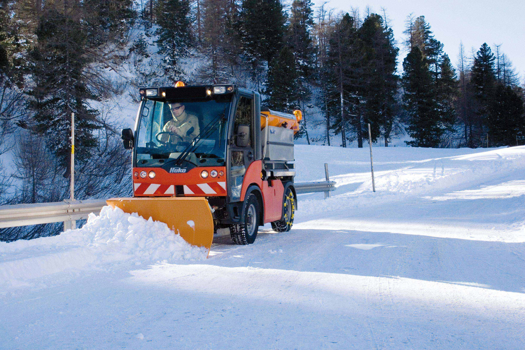 wenigen Handgriffen einfach mit An- und Aufbaugeräten für den Winterdienst ausrüsten. Für den „kleinen Winterdienst“ sind Anbaustreuer, im „großen Winterdienst“ professionelle Aufbau-Silostreuer verfügbar. In Verbindung mit Frontkehrmaschine und Räumschildern gelingt so die effektive Schnee und Eisbekämpfung - mit der Option „schneller Winterdienst” mit bis zu 45 km/h.